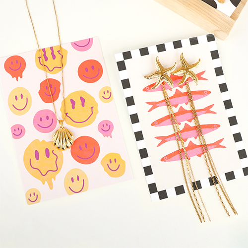 Deze nieuwe collectie RVS statement oorbellen en hangers is een echte must-have! De hangers en oorbellen kun je makkelijk combineren en zo een prachtige set creëren met een bijpassende ketting. Presenteer ze op sieradenkaartjes van BY31® in een frisse voorjaars- of Moederdagstijl. Trendy, veelzijdig en perfect als cadeau!