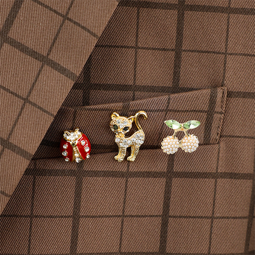 Pins kersen / kat / lieveheersbeestje Gold-green-red-black