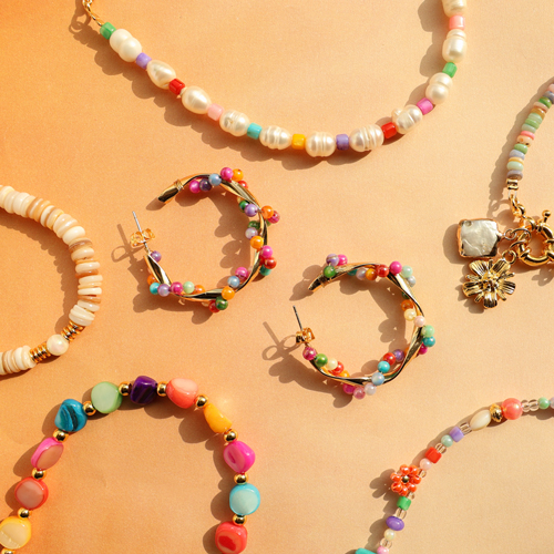 Deze nieuwe collectie schelp kralen komt in prachtige neutrale en kleurrijke kleuren, beschikbaar in diverse vormen en maten. Creëer vrolijke armbanden met DQ kralen, rocailles, parel- en bloem bedels of maak stijlvolle oorbellen met artistic wire en DQ creolen.