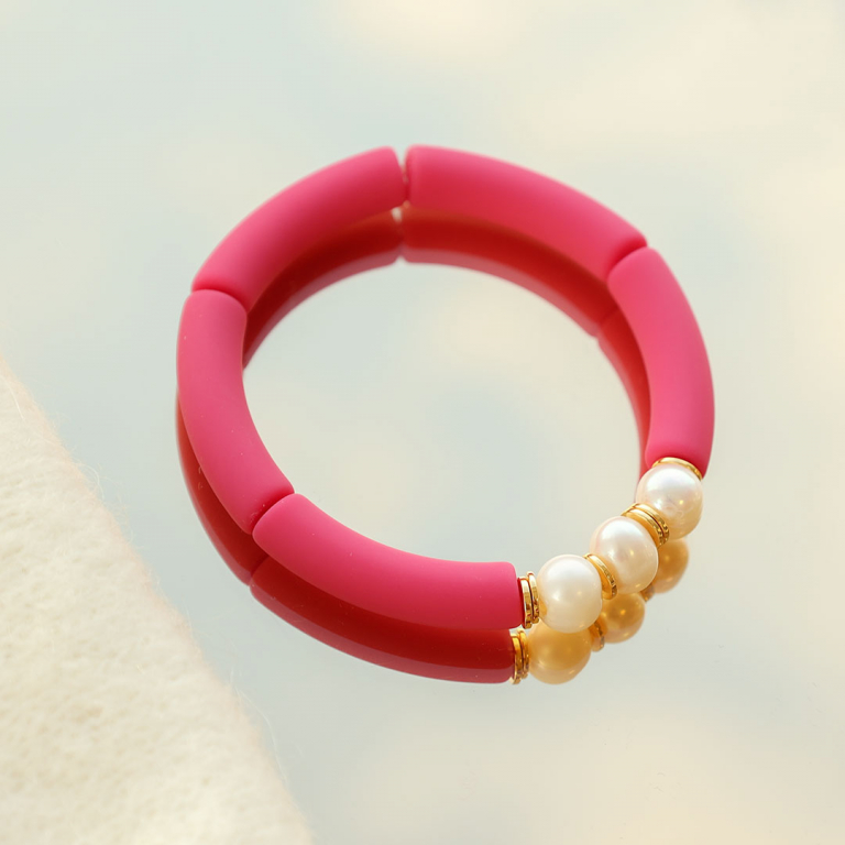 • Acryl kralen tube matt Fuchsia pink-gold