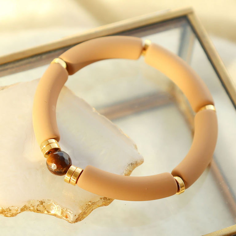 • Acryl kralen tube Caramel beige marble