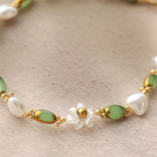 Zoetwaterparels tussenstuk klaver Gold-Natural white
