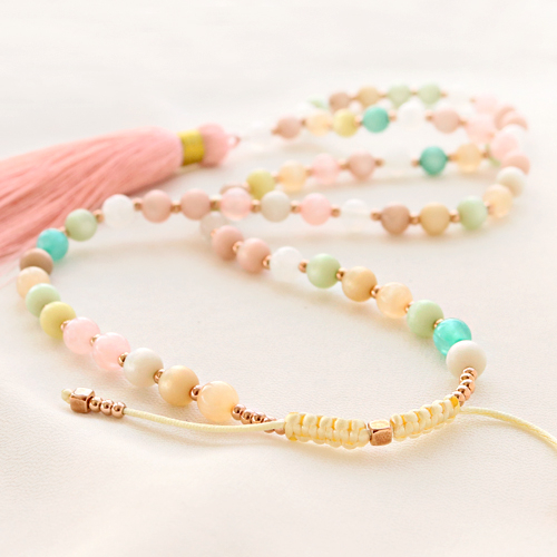 Met Polaris Elements kralen kun je veel verschillende soorten sieraden maken. Maar ze zijn vooral ook erg leuk om te combineren met macramé draad en stainless steel (RVS) metalen kralen in een lange ketting. Je kunt de kralen rijgen over het macramé draad en na elke kraal een knoopje leggen. Zo creëer je heel simpel een fantastisch effect. Door de sluiting van de ketting met een schuifknoop te maken wordt het een mooi geheel en is de ketting ook nog in lengte verstelbaar. Natuurlijk kun je de kralen ook rijgen zonder knoopjes te leggen en de Polaris Elements kralen afwisselen met kralen. Hang aan de ketting leuke bedels of bijvoorbeeld een kwastje voor een zomers touch.