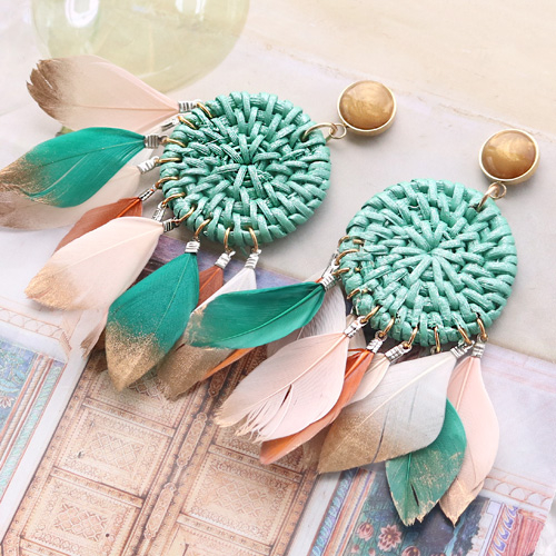 Festival sieraden inspiratie met veertjes en kleurrijke rotan hangers
