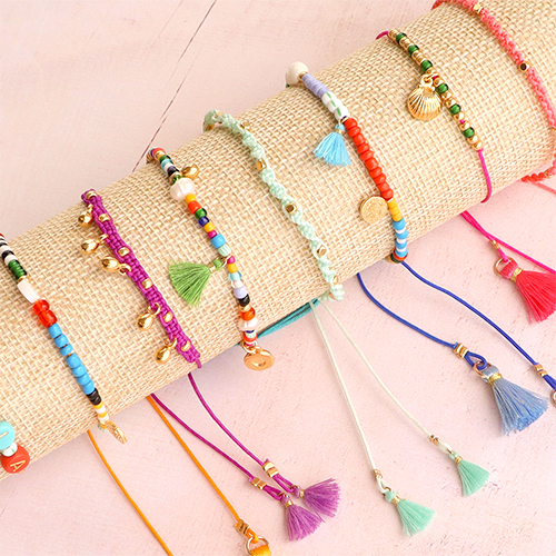 Deze kwastjes in zomerse kleuren zijn ideaal voor jouw zomercollectie. Ontwerp armbanden met macramé draad in diverse kleuren en combineer schelpkralen, preciosa rocailles en rvs kralen met de kwastjes. Een trendy telefoonkoord mag natuurlijk niet ontbreken in jouw collectie!