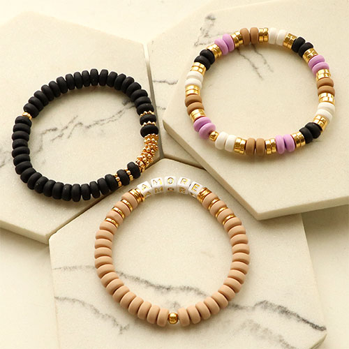 Ben jij op zoek naar mooie kleurrijke kralen voor je komende sieraden collectie? Ontdek dan deze nieuwe polymeer kralen rondellen en laat je inspireren. Maak een armbanden set met diverse kleuren polymeer kralen die je combineert met DQ metalen disc rondellen en DQ metalen spacer kralen en rijg alle kralen aan elastiek rijgdraad. Gebruik metaaldraad en knijpkralen voor het maken van een bijpassende ketting en je sieraden set is af!