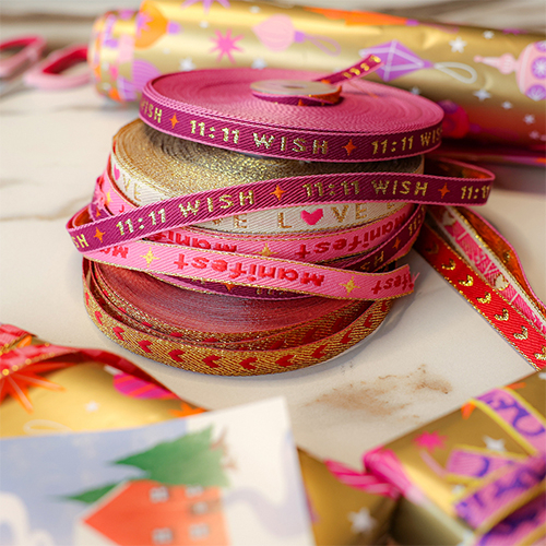 De feestmaand is weer begonnen, en wat is er leuker dan je cadeautjes extra speciaal te maken? Laat je inspireren en ontdek wat je allemaal kunt doen met lint met tekst. Of je nu gaat voor glitters, een mooi printje of een speelse tekst, wij hebben voor ieder wat wils! Ga zelf creatief aan de slag en gebruik onze linten ook voor het maken van feestelijke sieraden en haaraccessoires. Zo geef jij eenunieke en persoonlijke touch aan jouw creaties!