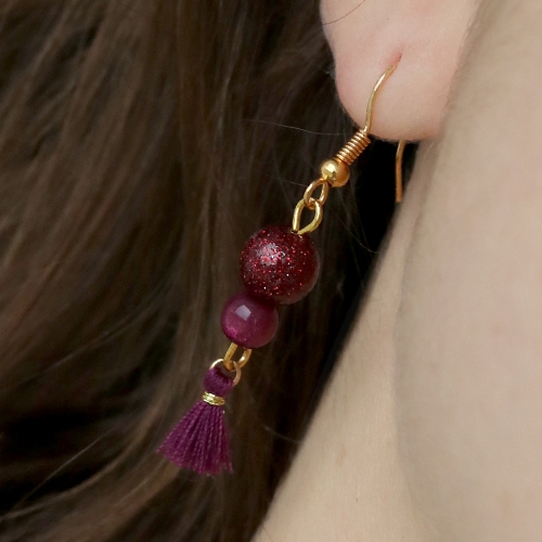Deze oorbellen & armbandjes gemaakt met acryl kralen glitter, kralen van Polaris Elements, rocialles, pompom bedels en kwastjes zijn leuk voor iedere gelegenheid. Al zien wij ons met de feestdagen al helemaal lopen met deze leuke oorbellen! Maak designs in je favoriete kleur of mix verschillende kleuren met elkaar voor een verrassend effect. De oorbellen zet je in elkaar met een nietstift of kettelstift. Rijg glitter kralen op de nietstift en bevestig deze aan een oorbel van DQ metaal of stainless steel (RVS). Tot slot bevestig je een pompom of kwastje aan de onderkant en je bent klaar. Succes met het maken van deze draagbare snoepjes.