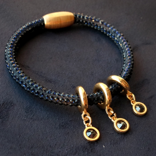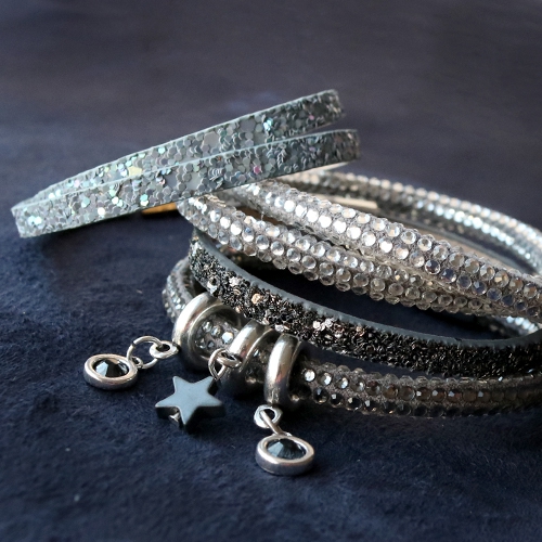 Deze chique armbanden maak je in een handomdraai. Maak verschillende designs met verschillende sloten, eindkapjes en schuivers. Het platte glitter (imi) leer combineer je met magneetsloten van DQ metaal in 5 en 10 mm. Voor een echte feestlook gebruik je het slot van DQ metaal waar vier stripes in kunnen, zo creëer jij je eigen eyecatcher. Het glitter koord met strass steentjes combineer je met sloten, eindkappen en schuivers van DQ metaal. Wanneer zou jij deze armbanden dragen?