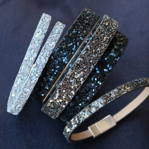 Armbanden met glitters die tijdloos, chique en feestelijk zijn gemaakt van glitterkoord met strass en glitter (imi) leer