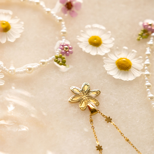 Roestvrij stalen (RVS) Stainless steel kettingen bloem Gold