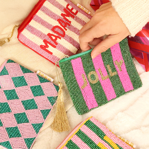 Hoe leuk zijn deze nieuwe tasjes met kralen voor de feestdagen? Ontdek onze unieke collectie met handgemaakte exemplaren uit India en feestelijke designs uit de BY31® collectie. De tasjes zijn verkrijgbaar met vrolijke printjes en sommige hebben ook een leuke tekst erop. Perfect als cadeautje, maar ook ideaal om sieraden en accessoires in te bewaren. Laat je klanten stralen met deze eyecatchers!