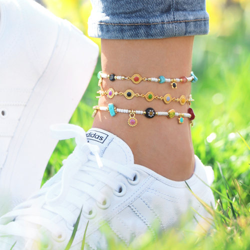 Klaar voor het maken van kleurrijke sieraden? Ga dan aan de slag met de rainbow DQ metalen kralen, bedels en tussenstukken! Met deze leuke items ontwerp je de vrolijkste armbanden, kettingen en enkelbandjes. Maak bijvoorbeeld een ketting door de DQ metalen tussenstukken aan elkaar te verbinden door middel van buigringen. Bevestig een karabijnslot en een verlengketting aan beide kanten en je sieraad is klaar. Creëer vervolgens kleurrijke armbanden en enkelbandjes. Combineer de DQ metalen kralen en bedels met Miyuki kralen, chip stones en Millefiori kralen. Rijg alle items op macramé draad en sluit af met een square knot. Hang kleurrijke kwastjes aan het uiteinde van het draad om het sieraad helemaal compleet te maken! Nu is het jouw beurt, veel succes!