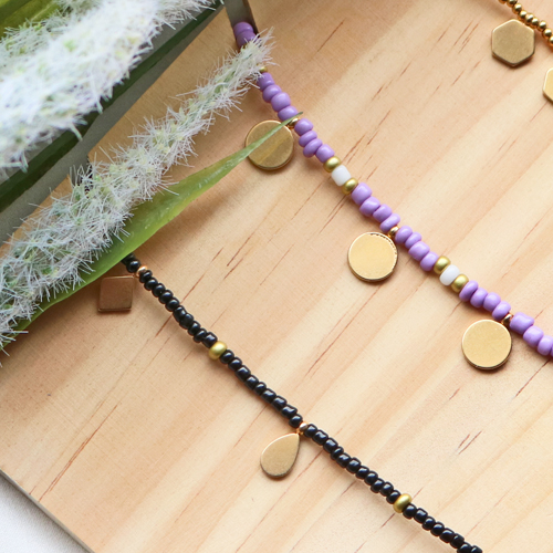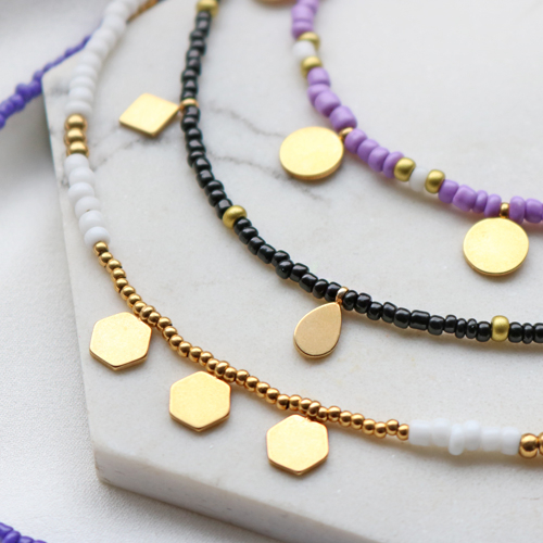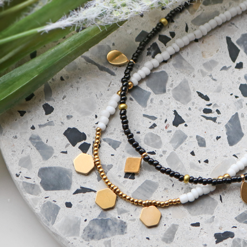 Met de nieuwste stainless steel bedels kun je natuurlijk allerlei super leuke sieraden maken. Maar dit keer hebben wij ervoor gekozen om ze te combineren in een ketting gemaak van rocailles. Om deze kettingen te maken rijg je rocailles in bijvoorbeeld leuke zomerse kleuren op metaaldraad. Tussen de rocailles door kun je dan verschillende stainless steel bedels rijgen. Zo krijg je een speelse ketting met minimalistische details. Deze kettingen zijn ook perfect om met elkaar te combineren en je kunt er dus voor kiezen om er meerdere tegelijk te dragen. Door bij het slotje een verlengketting toe te voegen kun je altijd nog variëren in de lengte van je ketting.