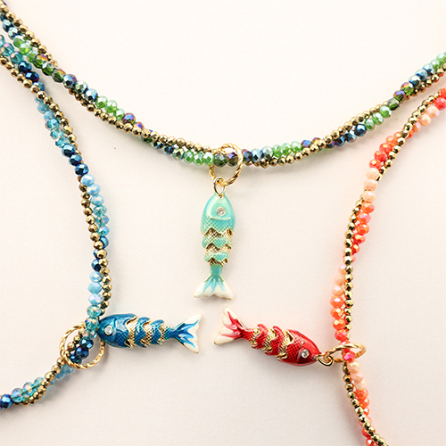 Eco-brass® metaal bedels vis Gold-green-white