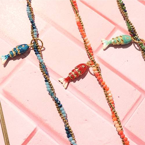 Deze nieuwe collectie bestaat uit kleurrijke kettingen met sprankelende facet kralen én rvs hartjes oorbellen met enamel details. Twee losse eyecatchers die perfect samen of apart te dragen zijn. Kant-en-klaar, glinsterend en ideaal om te mixen & matchen.
