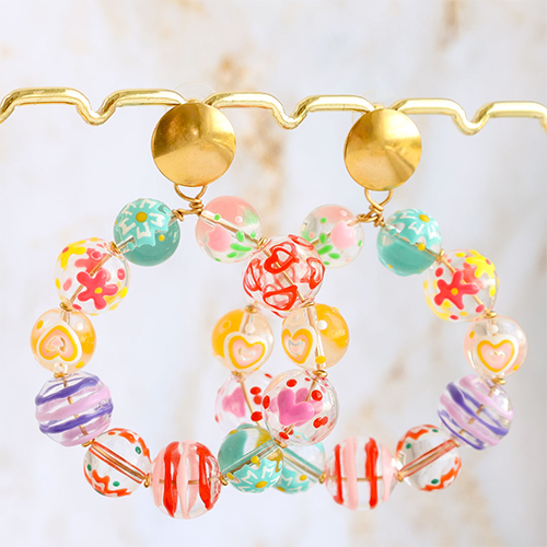Deze nieuwe serie glaskralen bestaat uit handgeschilderde kralen met prachtige motieven zoals kersen, hartjes en bloemen. Bevestig de glaskralen met andere kleurrijke kralen uit de collectie aan oorstekers of creolen oorbellen voor een trendy oorbellen collectie.