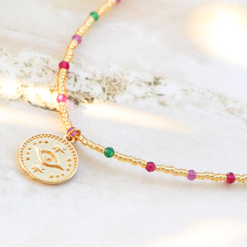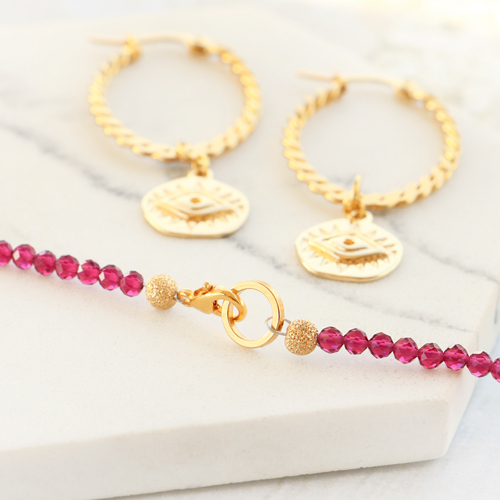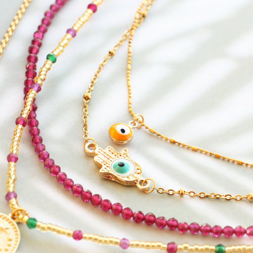 Inspiratie nodig voor het maken van trendy sieraden met het boze oog? Dan zit je hier goed! Wij zijn alvast met de serie aan de slag gegaan en hebben een aantal eigentijdse items gemaakt. Maak bijvoorbeeld een stijlvolle ketting met jasseron en hang daaraan jouw favoriete bedel met het boze oog/alziend oog. Natuurlijk kun je met deze bedels ook toffe minimalistische oorbellen maken. Kies eerst een oorbel onderdeel of creool en bevestig daarna de boze oog/alziend oog bedel. Wil je de set wat meer kleur geven? Dan is het ook super leuk om met rocailles, top facet kralen en DQ metalen kralen een ketting te rijgen. Gebruik een hanger met oog om er een bedel aan te bevestigen.