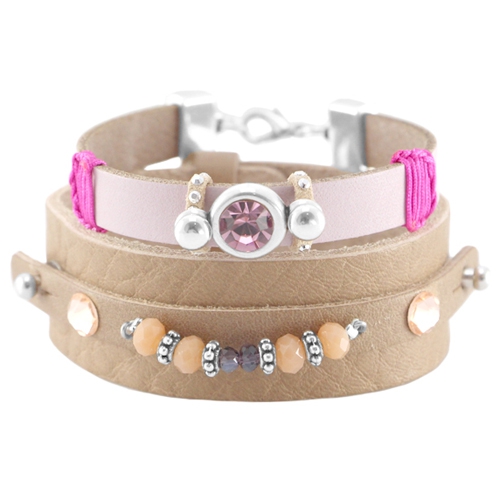 Ons assortiment leer is zeer uitgebreid. Daarom hebben wij nu voor u een aantal voorbeelden gemaakt met verschillende soorten leer. Er is een armband gemaakt met een brede Cuoio armband waar Swarovski flatback SS34 stenen op zijn geplakt en leuke kralen op zijn geregen. Er is een armband gemaakt met gevlochten rond DQ leer in combinatie met 5 mm DQ leer plat en een DQ metalen slot. Ook is er een armband gemaakt van 10 mm plat DQ leer waar een Swarovski setting op is vast gemaakt met behulp van suède draad. Ook is er een armband gemaakt met Divino leer en facetkralen. Er zijn zo veel mogelijkheden met onze super soorten leer! Mix en match!!