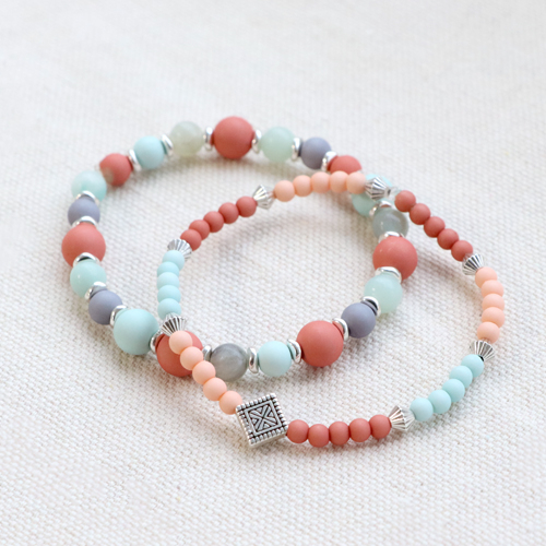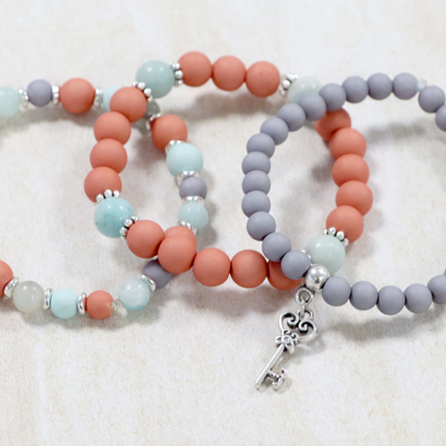 Met acryl kralen kun je heel gemakkelijk zelf vrolijk gekleurde sieraden maken met een trendy uitstraling. Wat heb je nodig? Acryl kralen in jouw favoriete kleuren, transparant elastiek rijgdraad van 1.0 mm en DQ metalen kralen, spacers en bedels. Nu is het tijd om de verschillende kralen en bedels met elkaar te gaan combineren in de leukste patronen. Naast DQ metalen bedels of kralen kun je natuurlijk ook kiezen voor natuursteen kralen. Als je meerdere armbandjes maakt, zorg er dan voor dat bepaalde kleuren terug komen in elk armbandje. Zo creëer je een set die perfect bij elkaar past! Vergeet ook zeker niet om verschillende groottes van de acryl kralen te gebruiken. Dit geeft jouw armbanden setje namelijk een speels effect.