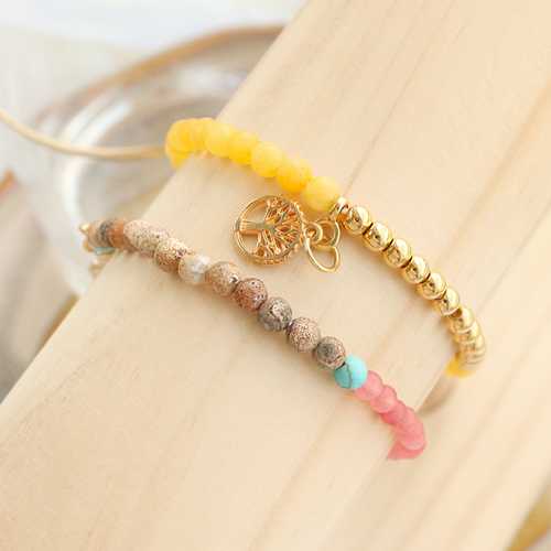 Wil je aan de slag gaan met onze nieuwe collectie natuursteen kralen? Wij gingen je alvast voor en maakten deze vrolijke armbandjes en oorbellen. Omdat de natuursteenkralen een mat uiterlijk hebben, vonden wij het leuk om er juist glanzende producten mee te combineren zodat er een leuk contrast ontstaat. Zo hebben wij de natuursteen kralen bijvoorbeeld gecombineerd met zoetwaterparels en DQ metalen, goudkleurige kralen en bedels. De armbandjes hebben we op elastiek geregen, zodat ze gemakkelijk te dragen zijn. Voor de oorbellen hebben we de natuursteen kralen aan een nietstift gehangen, zodat de kralen eigenlijk een soort ‘hanger’ worden. Veel plezier met deze fantastische must-haves!