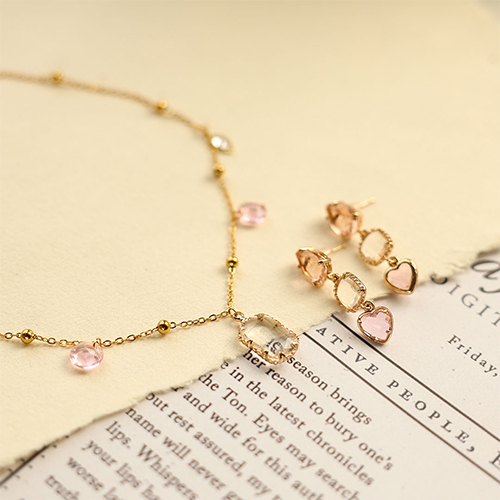 Hangers van crystal glas hart Light pink-gold