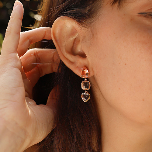 Oorbellen / oorstekers van Crystal Glass rechthoek Pink-amber orange-sand beige