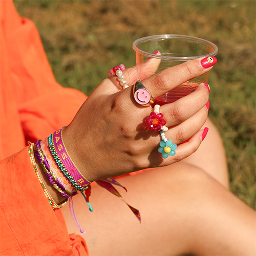 Laat je inspireren en ontdek de festival musthaves! Kettingen met acryl (letter) kralen, kant-en-klare kettingen, polymeer fruitjes en keramiek smileys zijn helemaal in. Voor hoedaccessoires kies je elastisch lint, acryl kralen, jasseron, kwastjes, parels en fruitbedels. Armbanden met tekstlint of kant-en-klare geweven armbandjes zijn een mega trend. Haaraccessoires zoals bloemen/schelpen klemmen, creolen met bedeltjes en acryl kralen mogen zeker niet ontbreken.