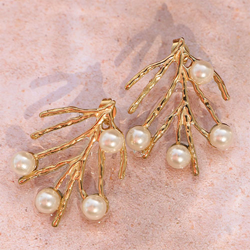 Roestvrij stalen (RVS) Stainless steel oorbellen / oorstekers zeewier imitatie parels Gold