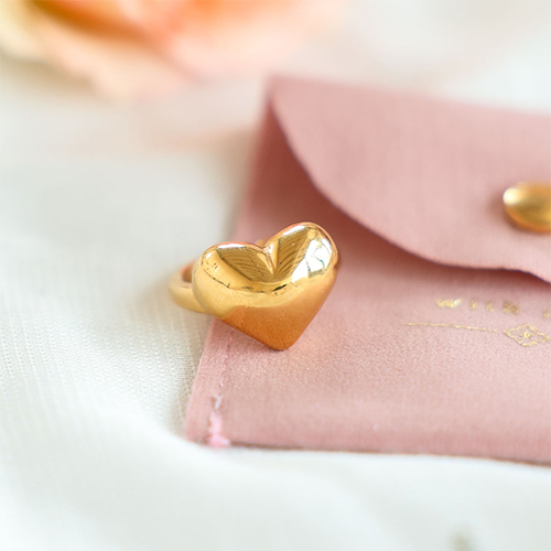 Roestvrij stalen (RVS) Stainless steel ringen hart Gold