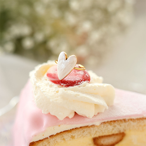 Roestvrij stalen (RVS) Stainless steel ringen enamel hart Pearl light pink-gold