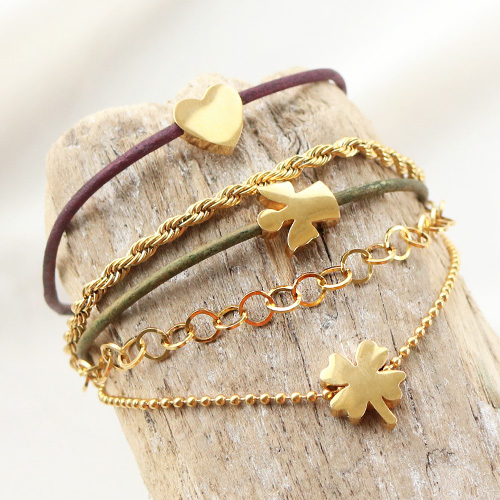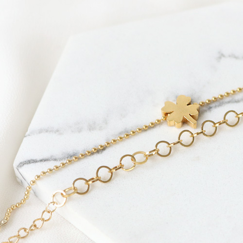 Roestvrij stalen (RVS) Stainless steel bedels klaver Goud