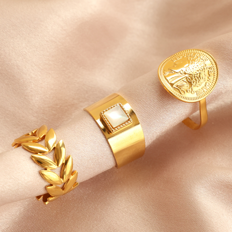 Roestvrij stalen (RVS) Stainless steel ringen blad Gold