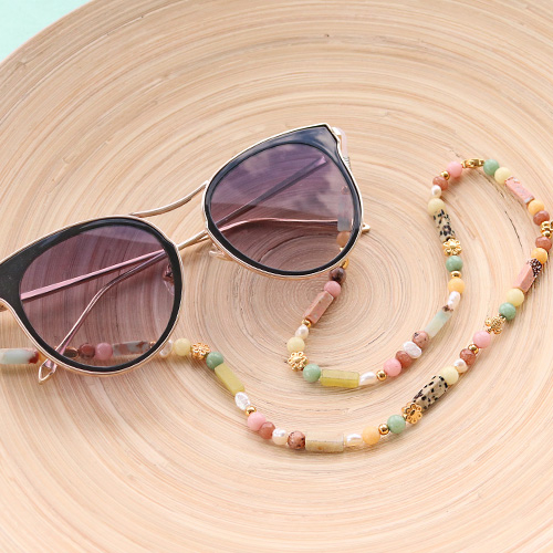 Met de nieuwe collectie tubes natuursteen kralen kun je fantastische sieraden en accessoires maken. Zo hebben wij ter inspiratie fijne armbandjes gemaakt met een bijpassende ketting én een fantastisch, trendy zonnebrillenkoord. De armbandjes hebben we geregen op elastisch rijgdraad en de tubes natuursteen kralen zijn gecombineerd met onze ronde natuursteen kralen, zoetwaterparels en DQ metalen kralen. Tot slot hebben we de armbandjes versierd met een crystal glas hanger. De bijpassende ketting is gemaakt van ball chain en een karabijn slot. De ketting is gecombineerd met dezelfde kralen geregen op een nietstift. Het zonnebrillenkoord is absoluut niet lastig om te maken en zeker de moeite waard! Rijg de natuursteen kralen, DQ metalen kralen en zoetwaterparels op een speelse manier op elastisch rijgdraad, sluit af met twee bril koord eindjes en jouw super trendy accessoire is klaar!