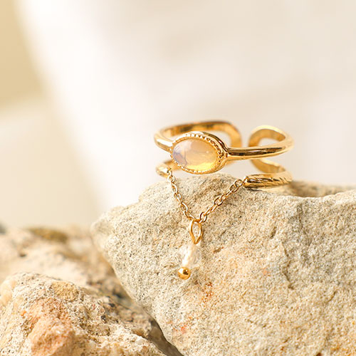 Roestvrij stalen (RVS) Stainless steel ringen met natuursteen Gold-milky white