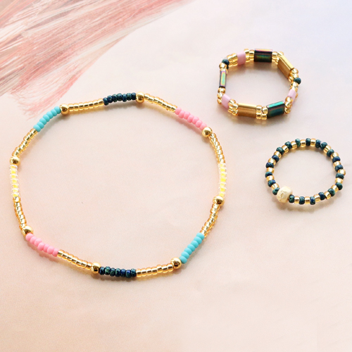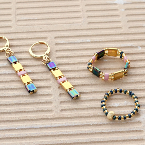 Met de nieuwe collectie Miyuki kralen delica’s kun je talloze sieraden maken. Zo hebben we er oorbellen, armbandjes én zelfs ringetjes mee gemaakt. De Miyuki kralen delica’s lenen zich perfect voor het maken van fijne en subtiele sieraden. We hebben de Miyuki kralen gecombineerd met goudkleurige DQ metalen kralen en het sieraad vervolgens versierd met DQ metalen bedels. Om kraaltjes als Miyuki sneller te rijgen, adviseren we je gebruik te maken van de Beadalon Spin-N-Bead Bead Loader. Succes!