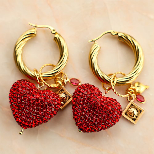 Hangers van crystal glas druppel 11x7mm Indian pink crystal-gold
