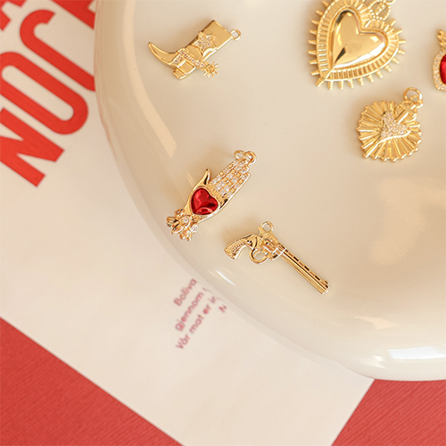Brass TQ metaal bedels hart Gold-red