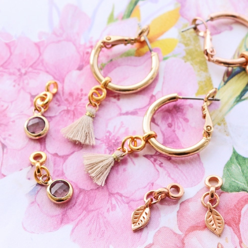 Deze oorbellen kunnen altijd! Je past ze namelijk gemakkelijk aan op je stemming of gelegenheid. Je hoeft er enkel een paar leuke bedels aan te hangen! Deze bedels kun je gemakkelijk verwisselen. Dit deden we met crystal glas hangers, voor een chique look. Kwastjes voor een vrolijke festival look en DQ metalen bedels voor een stoere alledaagse look. Vind jij dit ook zo leuk?