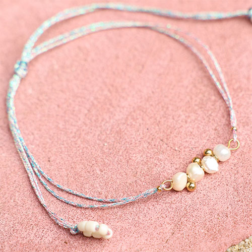 Deze nieuwe serie macramé draad is een musthave voor jouw zomercollectie. Verkrijgbaar in verschillende glitter kleuren zoals paars, lichtblauw, roze, wit en goud in de maten 0,8mm en 1,00mm. Creëer mooie kettingen in combinatie met rocailles en RVS bedels of ga voor enkelbandjes met schelp bedels en parels!