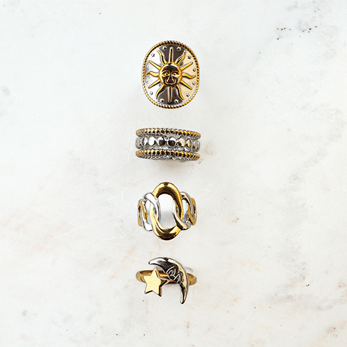Roestvrij stalen (RVS) Stainless steel ringen ster en maan Gold-silver