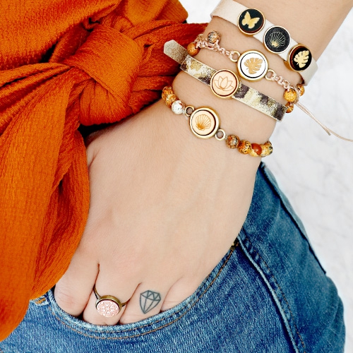 Sieraden met een natuurlijke uitstraling in lichte tinten zijn perfect voor de zomer! De houten cabochons in metallic en natuurlijke hout kleur staan perfect in een setje met deze tinten. Voor deze sieraden set gebruikten we verschillende technieken zoals diverse technieken met macramé draad in 1 mm gecombineerd met natuursteenkralen. Ook gebruikten we het zomerse rijgmateriaal stitched Ibiza lint in deze set! Het laatste rijgmateriaal wat we gebruikte was silk style gestikt koord, we love it! De makkelijkste, maar zeker net zo leuke sieraden in deze set maakte we met onze kant-en-klare sieraden settingen voor een ring of oorbel, waar je gemakkelijk een cabochon in plakt met sieradenlijm.