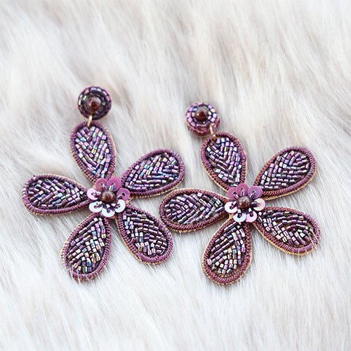 Trendy oorbellen / oorstekers met glaskralen bloem Aubergine