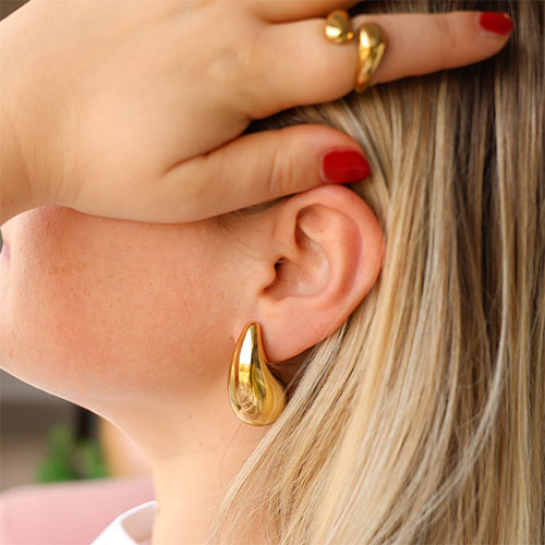 Roestvrij stalen (RVS) Stainless steel oorbellen / oorstekers druppel Gold