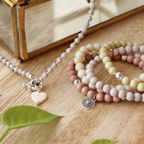 Door gebruik te maken van elastiek draad, maak je heel snel de prachtigste armbanden. Combineer de shiny acryl kralen met de matte acryl kralen uit de collectie voor een elegante look en wissel de kralen af met bijvoorbeeld DQ kralen. Hang tot slot een mooie bedel aan je armband. Gebruik sieradenkaartjes om de twee armbanden op een trendy manier te presenteren en te verkopen.