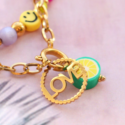Roestvrij stalen (RVS) Stainless steel bedels/tussenstuk "LOVE" Goud