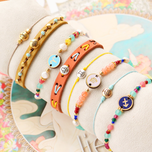Met zodiac kralen en macramé draad kun je deze leuke sieraden maken: