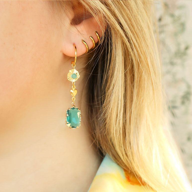 Hangers van Crystal Glass rechthoek Aquamarine blue-gold
