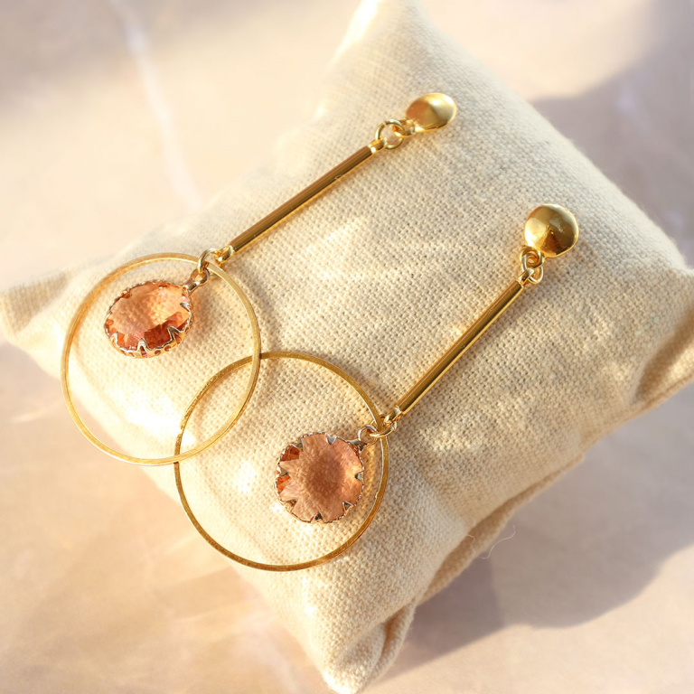 Voor het ontwerpen van lange oorbellen kun je de hangers van Crystal Glass combineren met tussenstukken van Crystal Glass, een DQ metalen tussenstuk of een jasseron ketting. Gebruik kleine zoetwaterparels die je met Artistic Wire om een dichte ring wikkelt. Draai het Artistic Wire een paar keer strak om de ring en rijg 1 parel aan het draad. Wikkel vervolgens tweemaal om de ring alvorens een volgende parel aan te rijgen. Verwerk de ring in trendy oorbellen.