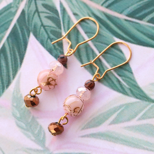 Hoe verwerk je de nieuwe collectie schelpkralen tot een mooi sieraad? Kies er bijvoorbeeld voor om de schelp kralen te gebruiken bij het maken van oorbellen. De schelp kralen zijn soms al prachtig versierd met een gold line of een black line waardoor de kralen het mooist te combineren zijn met goudkleurige sieraadonderdelen. Gebruik DQ metalen tussenstukken en kralen om jouw unieke oorbellen te maken. Versier je oorbellen met top facet kralen om de mooie glans van de schelp kralen extra te benadrukken. Rijg jouw creatie aan een kettelstift en je oorbel is compleet. Nu hoef je enkel nog maar jouw oorbel aan de kettelstift te bevestigen.
